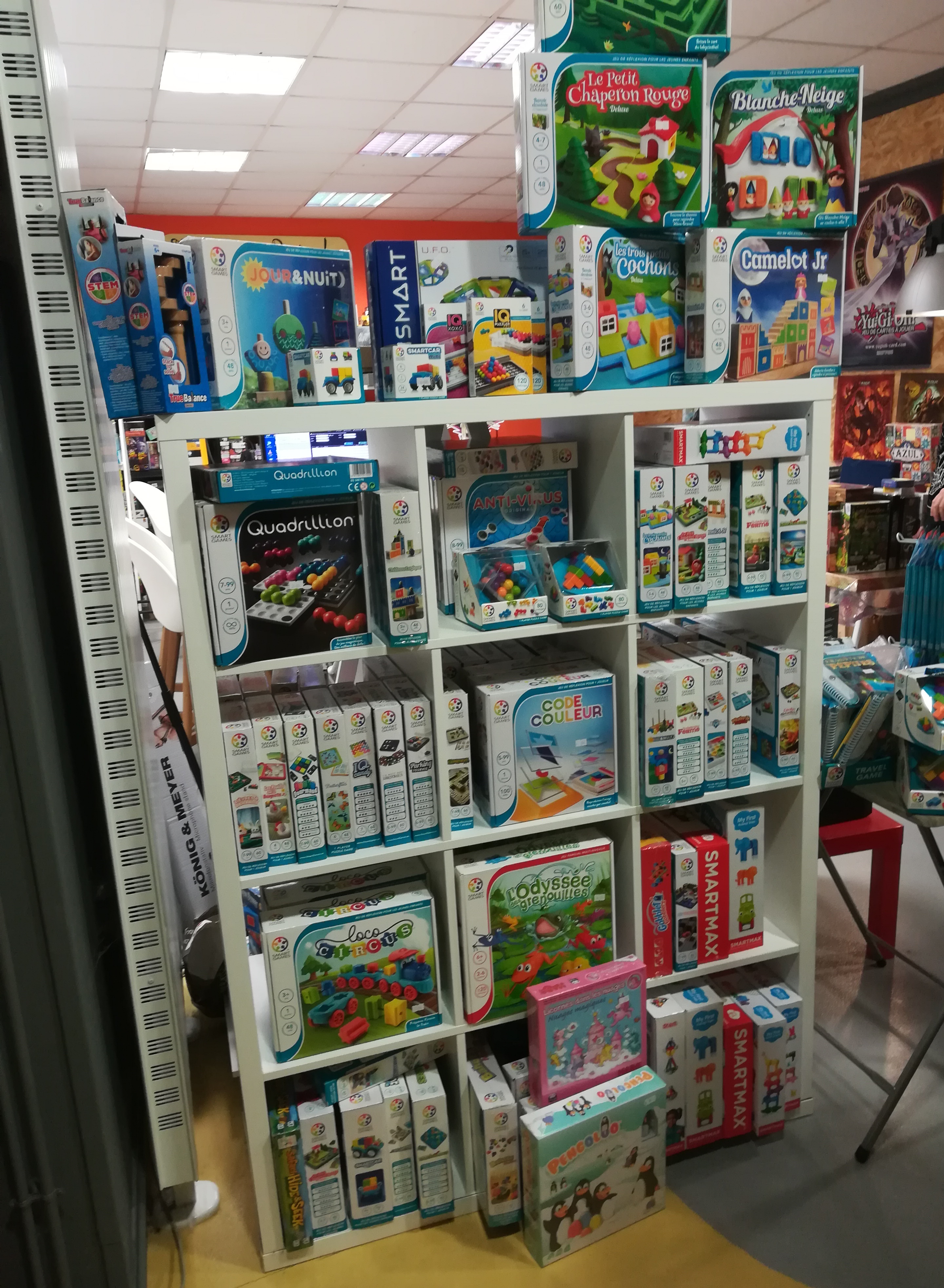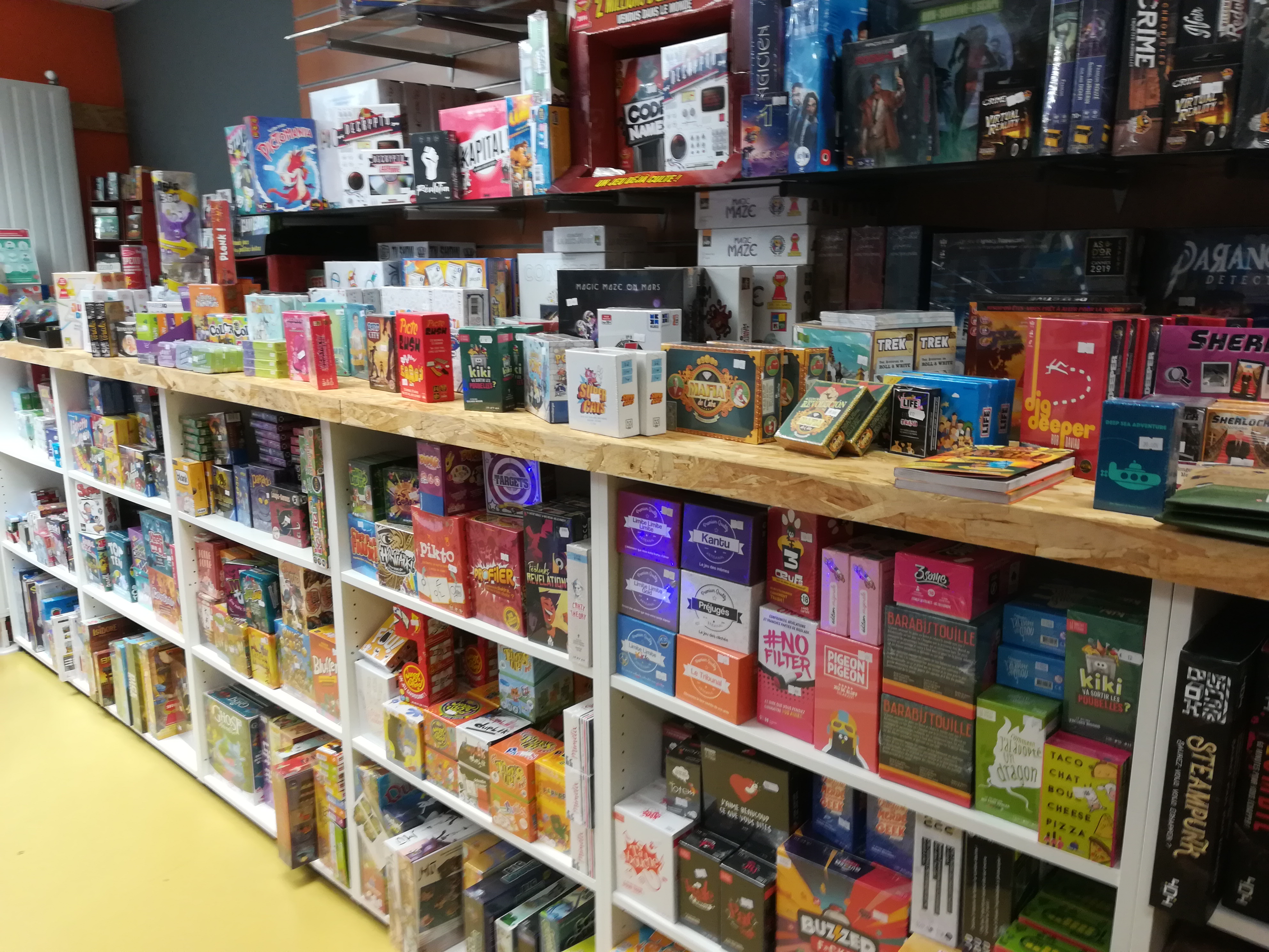 Très grand choix de jeux de société. Je passe toujours plusieurs heures à regarder les nouveautés (elles sont vraiment à jour). Personnel très sympathique et compétent. Tous les jeux sont en français mais ils ont une sélection de jeux indépendants de la langue